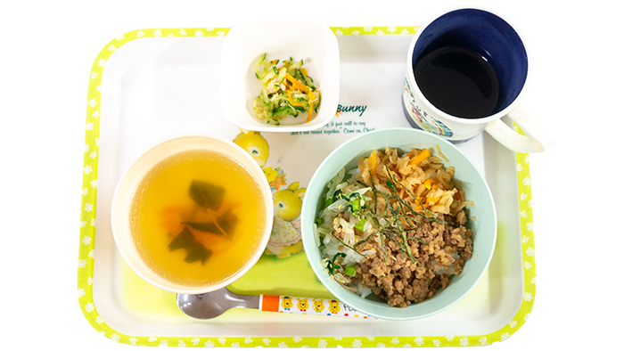 9月25日のお給食 2025 9/25 給食 今日の献立はビビンバ丼、にんじんしりしり、ワカメスープです。 幼児さんクラスの盛り付けです 乳児さんクラスの盛り付けです 給食 9月22日のお給食 9月26日のお給食