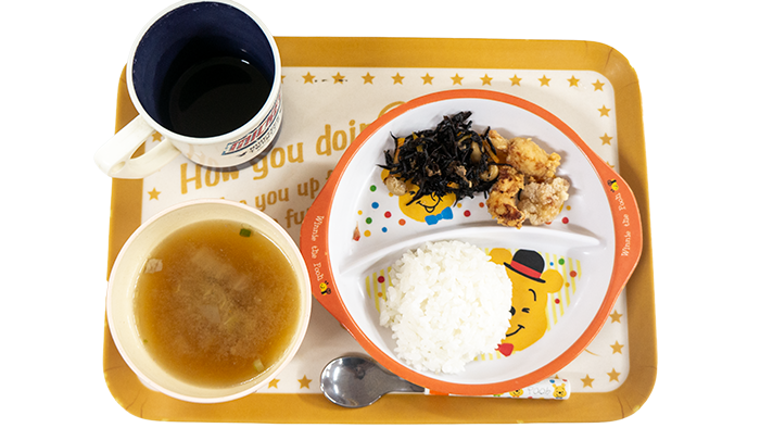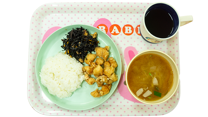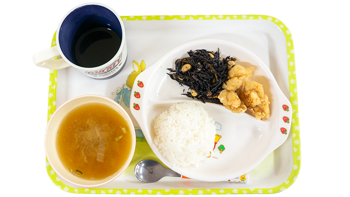 9月26日のお給食 2025 9/26 給食 今日の献立は鶏の竜田揚げ、ひじきと大豆の煮物、ごはん、豚汁です。 幼児さんクラスの盛り付けです 乳児さんクラスの盛り付けです アレルギー対応メニューです 給食 9月25日のお給食 9月29日のお給食