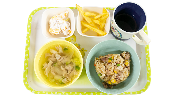 10月29日のお給食 2025 10/29 給食 今日の献立はフルーツサンド、ビーフシチュー、フライドポテトです。 幼児さんクラスの盛り付けです 乳児さんクラスの盛り付けです アレルギー対応メニューです 給食 10月28日のお給食 10月30日のお給食