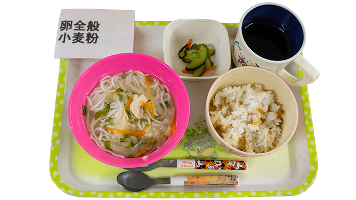 11月11日のお給食 2025 11/11 給食 今日の献立は鶏塩うどん、じゃこご飯、きゅうりとにんじんの浅漬けです。 幼児さんクラスの盛り付けです 乳児さんクラスの盛り付けです アレルギー対応メニューです 給食 11月10日のお給食 11月12日のお給食