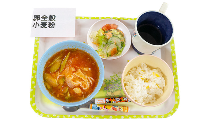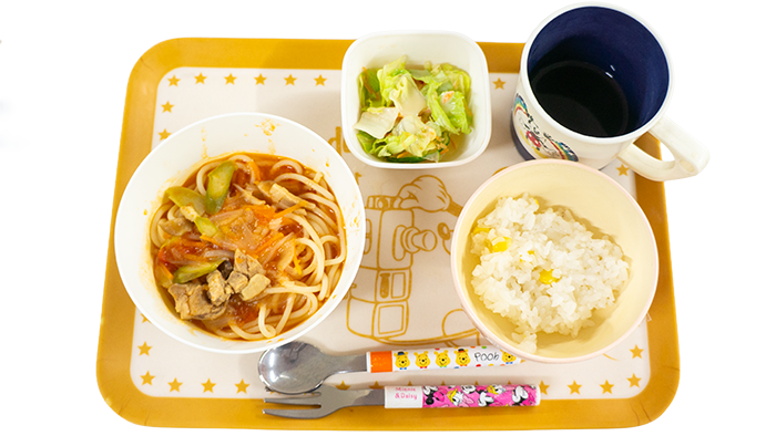 11月18日のお給食 2025 11/18 給食 今日の献立はチキンとアスパラのトマトスパゲティ、コーンライス、グリーンサラダです。 幼児さんクラスの盛り付けです 乳児さんクラスの盛り付けです アレルギー対応メニューです 給食 11月14日のお給食 11月19日のお給食