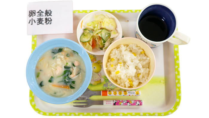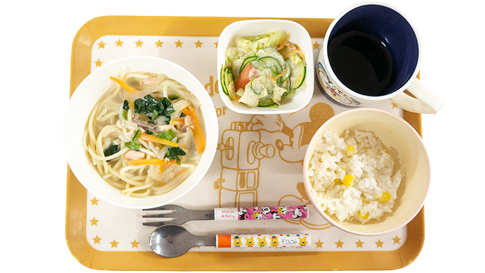 1月20日のお給食 2026 1/20 給食 今日の献立は鮭とほうれん草のクリームスパゲティ、コーンライス、グリーンサラダです。 幼児さんクラスの盛り付けです 乳児さんクラスの盛り付けです アレルギー対応メニューです 給食 1月19日のお給食 1月21日のお給食