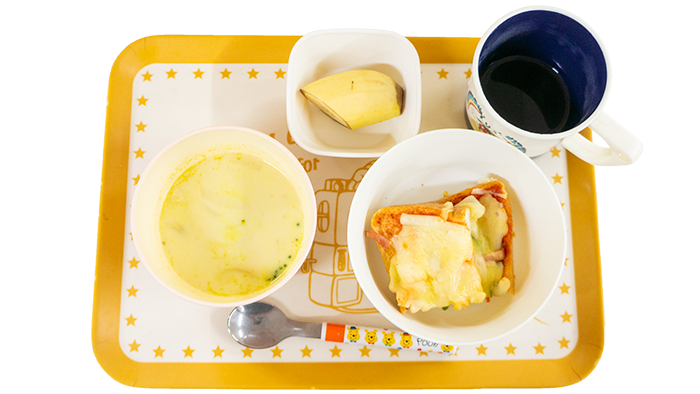 1月21日のお給食 2026 1/21 給食 今日の献立はピザトースト、クリームシチュー、バナナです。 幼児さんクラスの盛り付けです 乳児さんクラスの盛り付けです アレルギー対応メニューです 給食 1月20日のお給食 1月22日のお給食