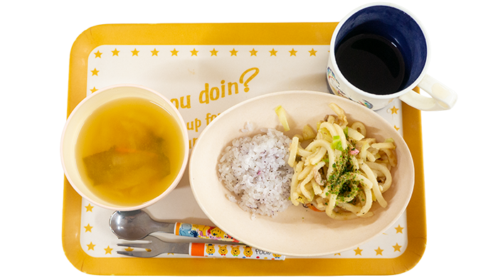 1月27日のお給食 2026 1/27 給食 今日の献立は焼うどん、ゆかりごはん、白菜と人参の甘酢和えです。 幼児さんクラスの盛り付けです 乳児さんクラスの盛り付けです アレルギー対応メニューです 給食 1月26日のお給食 1月28日のお給食