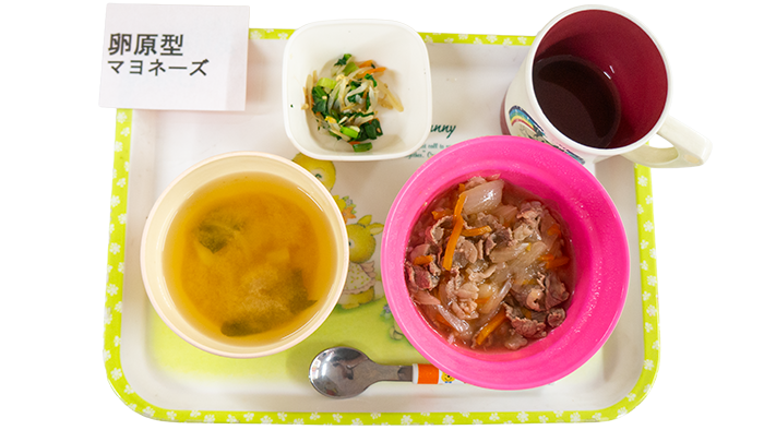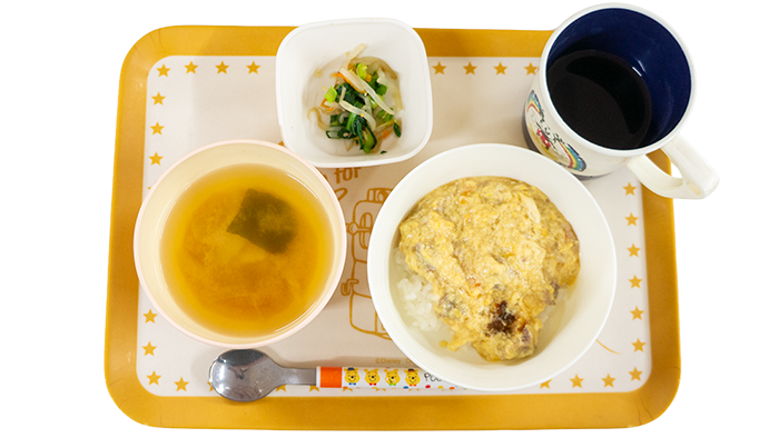 2月5日のお給食 2026 2/05 給食 今日の献立は他人丼、小松菜ともやしの胡麻和え、じゃがいもと玉ねぎのお味噌汁です。 幼児さんクラスの盛り付けです 乳児さんクラスの盛り付けです アレルギー対応メニューです 給食 2月4日のお給食