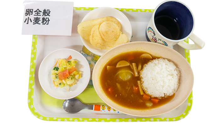 2月16日のお給食 2026 2/16 給食 今日の献立はウインナーカレー、コールスローサラダ、ポテトチップスです。 幼児さんクラスの盛り付けです 乳児さんクラスの盛り付けです アレルギー対応メニューです 給食 2月13日のお給食