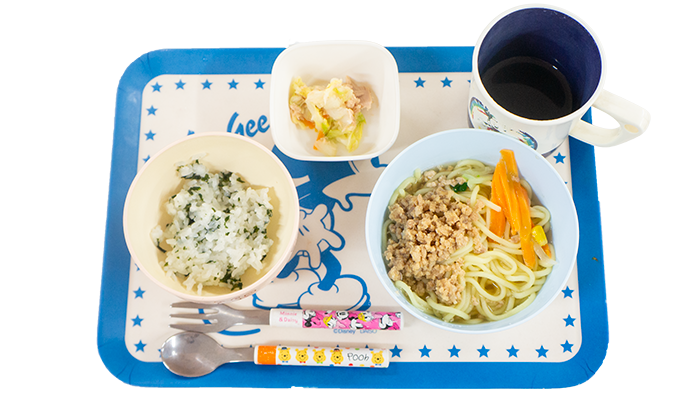 今日の献立は担々麺、わかめごはん、白菜とツナの和え物です。