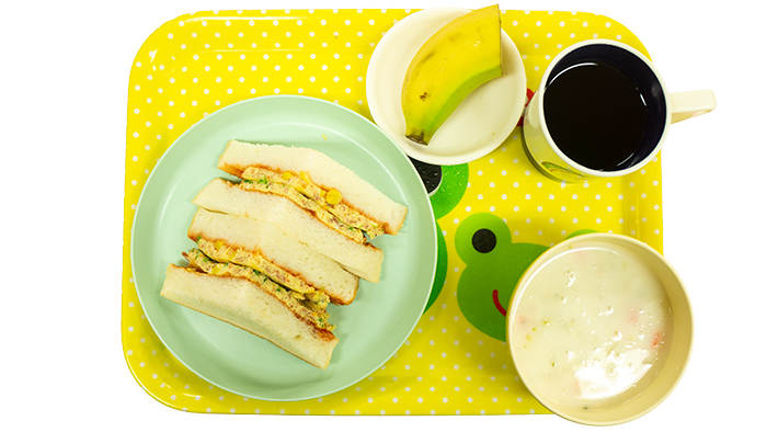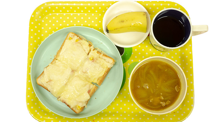 今日の献立はベーコンポテトトースト、カレーシチュー、バナナです。 幼児さんクラスの盛り付けです 乳児さんクラスの盛り付けです アレルギー対応メニューです -