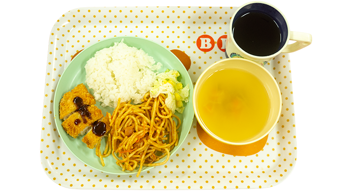 今日の献立は白身魚フライ、イタリアンスパゲティ、キャベツとコーンのマヨ和え、ごはん、コンソメスープです。 幼児さんクラスの盛り付けです 乳児さんクラスの盛り付けです アレルギー対応メニューです -